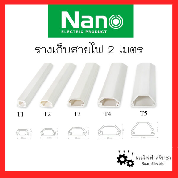 Nano รางพลาสติกเก็บสายไฟ รางเก็บสายไฟ รางเก็บสายโทรศัพท์ ยาว 2เมตร มีเทปกาว รางไฟมีเทปกาว2หน้า