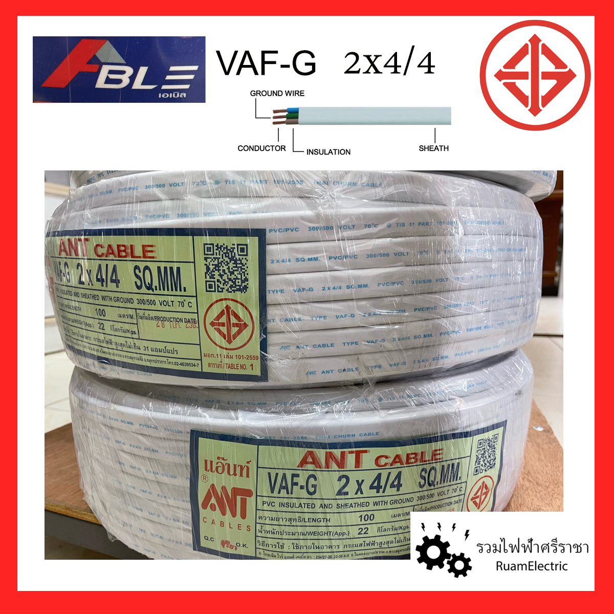 ABLE VAF-G 2×4/4 สายไฟฟ้า สายไฟทองแดง สายไฟตีกิ๊บ สายไฟสีขาว หุ้มฉนวน 2ชั้น 3แกน VAF-G Cable