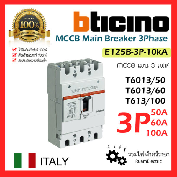 EASYTIKER THERMAL MAGNETIC MCCB อีซีทีกเกอร์ (MCCB) T6013 ใช้งานง่าย สะดวก Main breaker for Load center เป็นเมนเบรกเกอร์สำหรับตู้โหลดเซ็นเตอร์ E125B – 3P – 10 kA at 415V