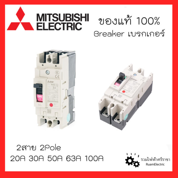 MITSUBISHI Breaker เบรกเกอร์มิตซูบิชิ ป้องกันไฟเกิน 1เฟส2สาย เบรกเกอร์2สาย 2P20A 2P30A 2P50A 2P63A 2P100A